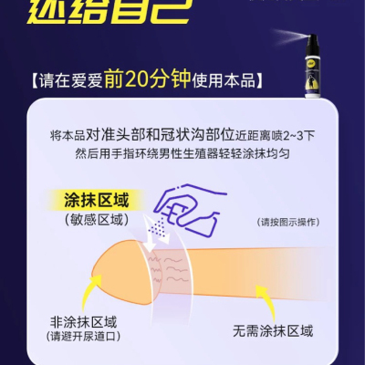 男士強效減敏延時噴霧,有助避免提早退場,添加生薑植粹更強效刺激, 不含利多卡因及本佐卡因,其天然活性成分,可降低皮膚過度敏感,不致麻痺無感,有助避免提早退場。不含利多卡因和苯佐卡因等麻藥成分,不會積聚於體內,絕對安全。15分鐘快速起效,無需等待,迅速滲透表皮並吸收,成分無西藥、無副作用。
